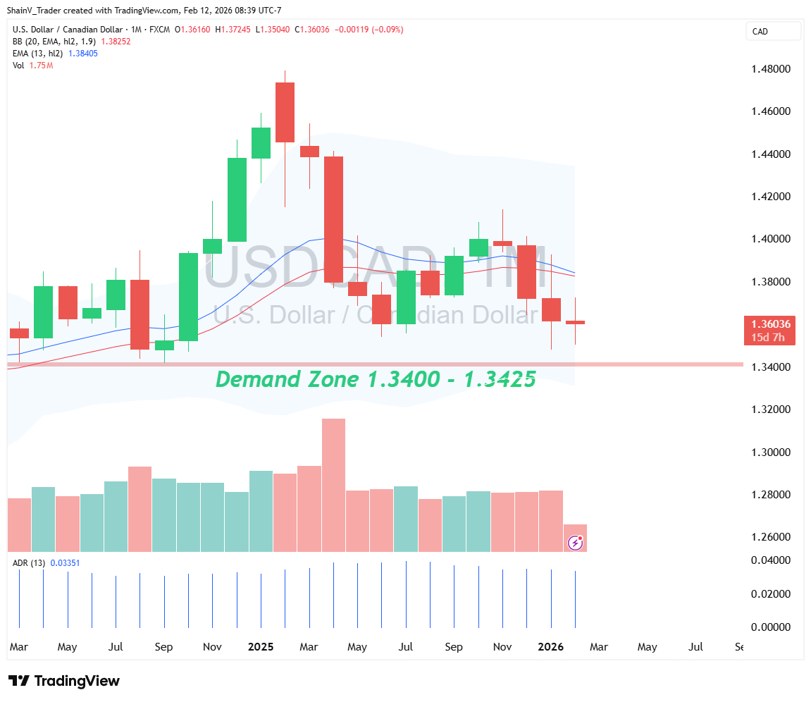 As you can see on the USDCAD monthly chart, a defined Swing Low setup occurred in this area back in September of 2024. If tested again, the 1.2400 demand zone has a great chance of being downside support yet again. Check out our Key Levels for more information on this Trade Idea.